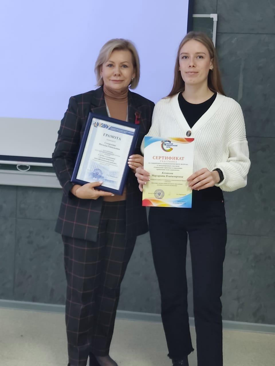 Маргарита Кочинова (руководитель Наталья Сухорукова) стала победителем номинаций конкурса на лучшую выпускную квалификационную работу, заняв первое место