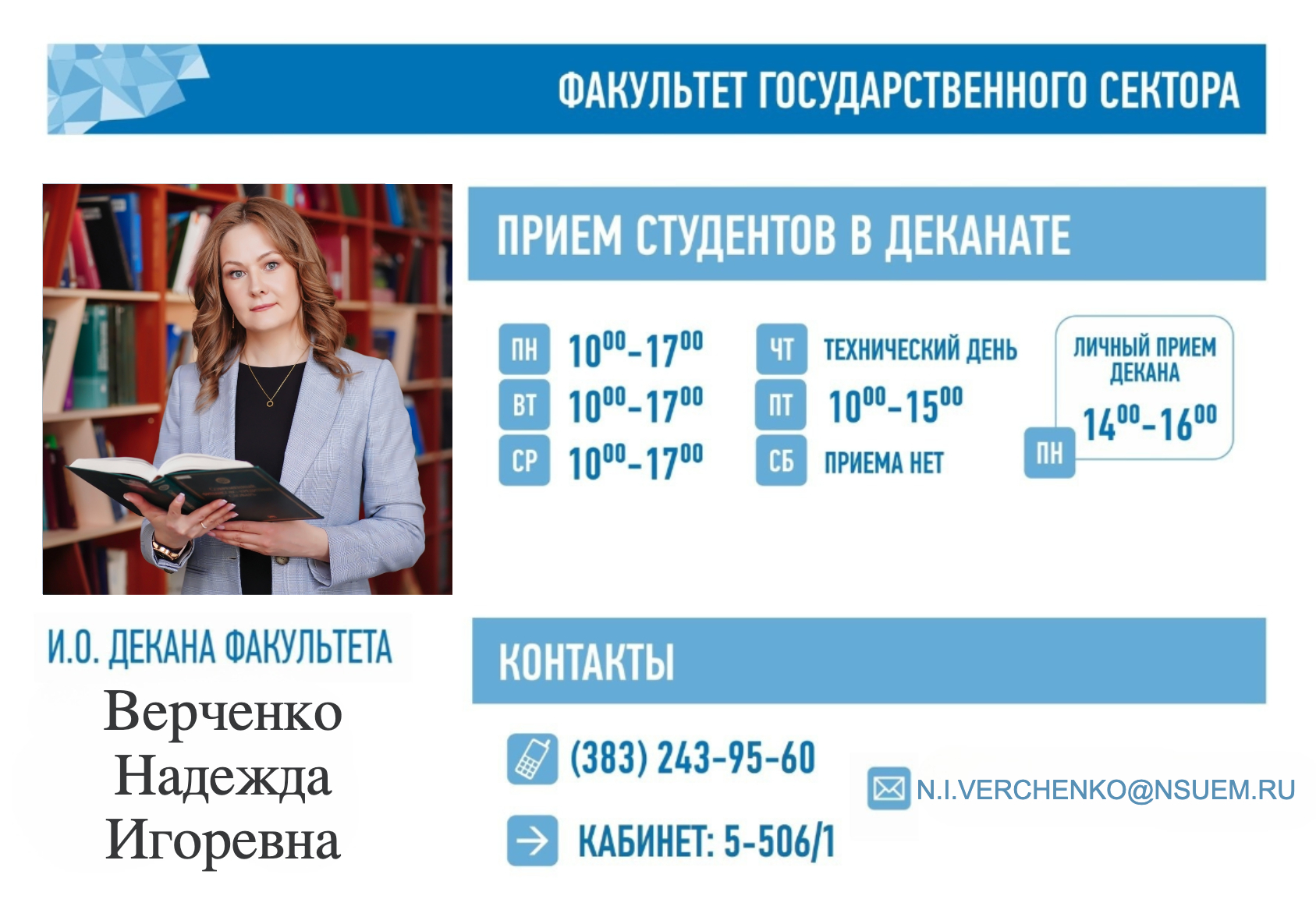 Верченко Надежда Игоревна — председатель Учёного совета, и.о. декана факультета государственного сектора