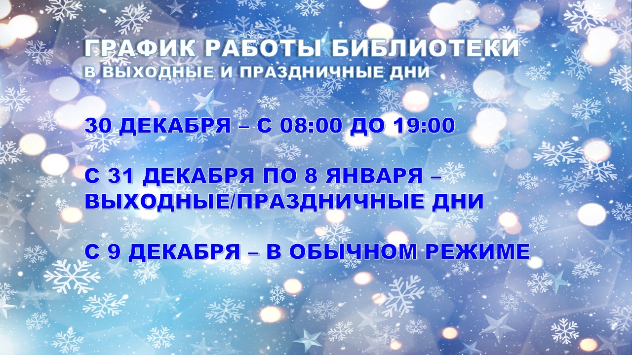 График работы библиотеки в праздничные и выходные дни