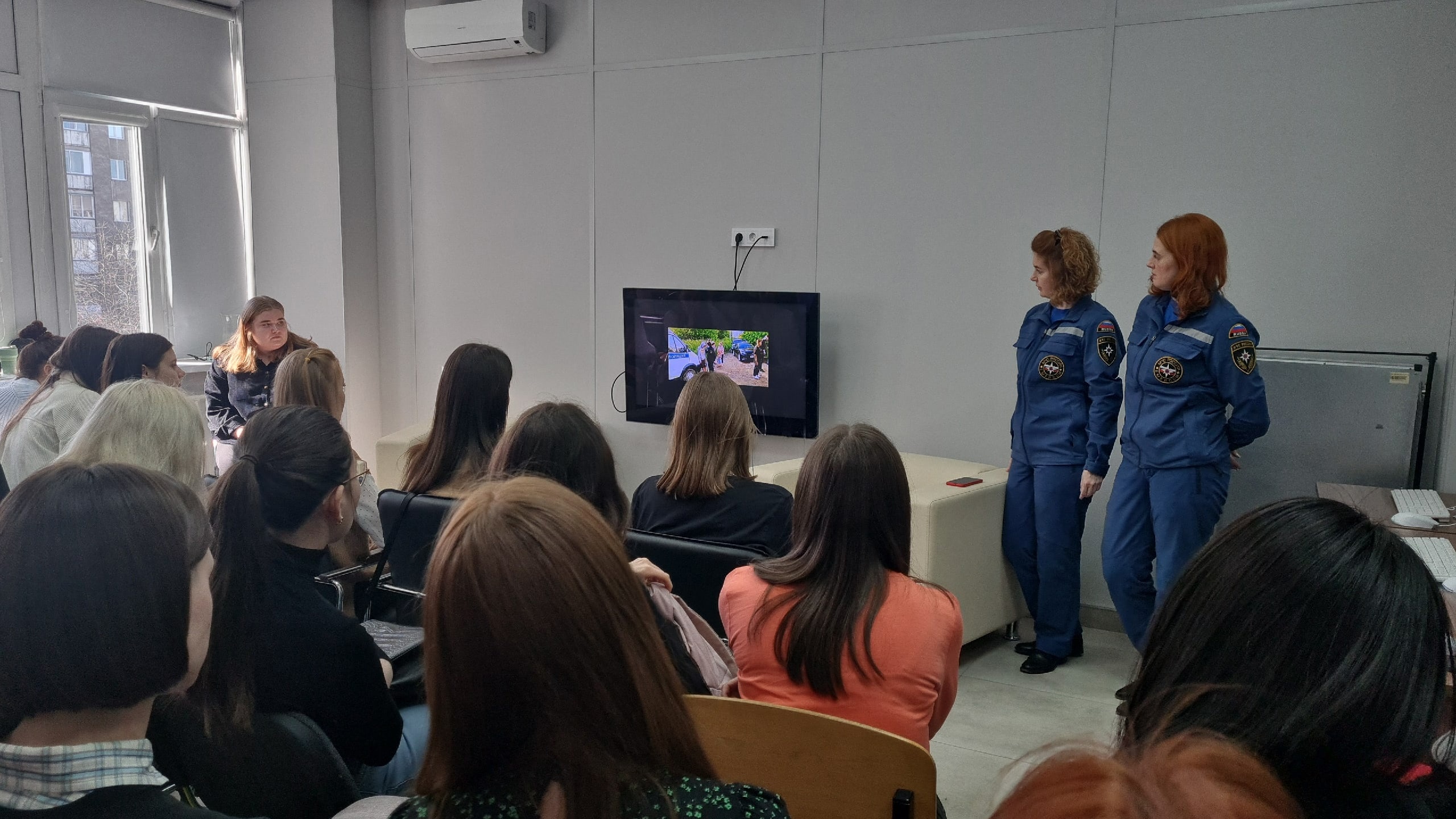 Сегодня психологи МЧС Углова Марина Олеговна и Леушина Дарья Константиновна приоткрыли секреты своего нелёгкого ремесла для студентов-психологов НГУЭУ.