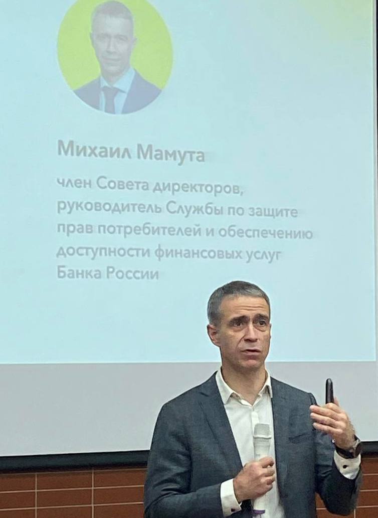 Сегодня в НГУЭУ приехал член Совета директоров Банка России, руководитель Службы по защите прав потребителей и обеспечению доступности финансовых услуг Михаил Мамута.