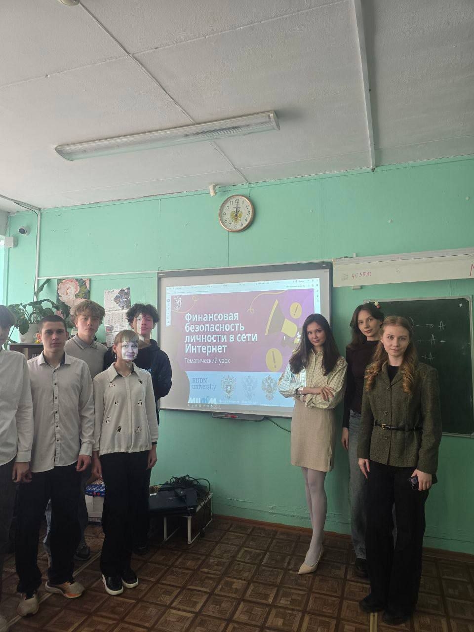 Студенты НГУЭУ в составе Юдашкиной Арины, Сидоренко Анастасии, Столяровой Софии рассказали школьникам о финансовой безопасности в сети Интернет.